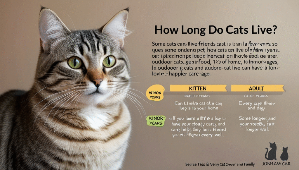 how long do cats live is a question many pet friends ask. Cats can live different amounts of time. Some cats live only a few years and some live more than fourteen years. Indoor cats that live in homes often reach older ages because they get food, care, and vet checks. Outdoor cats have more risks like cars, fights, and sicknesses. The breed, size, and genes of a cat can change how long it lives. Also, good food, clean water, playtime, and love help cats stay healthy. If you learn a little about cat care and give steady love, your cat can have a longer, happier life. This guide is short and easy to read for every cat owner and family. We will talk about kitten years, adult years, and senior cat care steps that help them live well. Simple tips make a big difference for your cat every day.